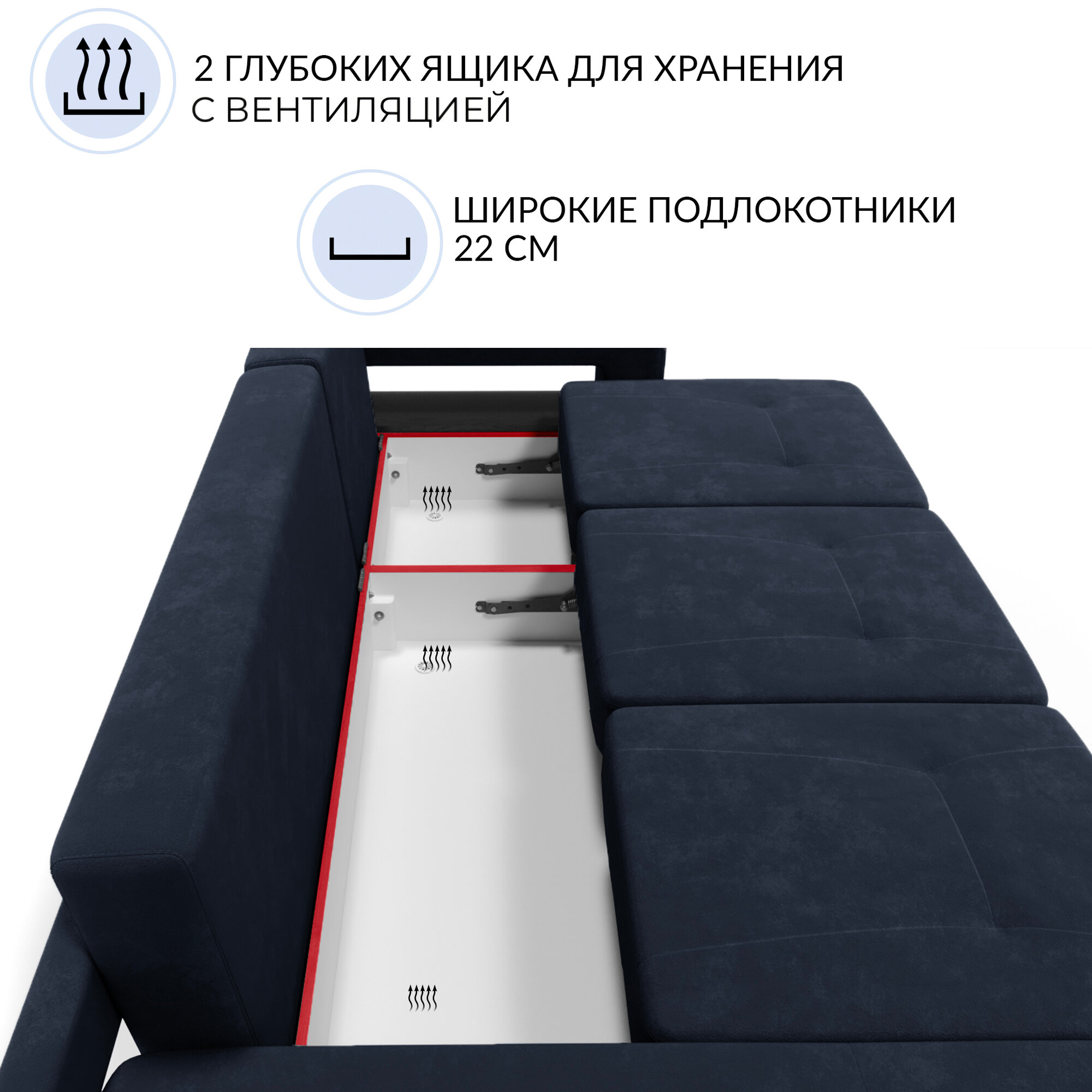 | Особенности | антивандальная обивка, модульный, пружинный блок, раскладная конструкция, с подлокотниками, съемные подушки, ящик для белья |