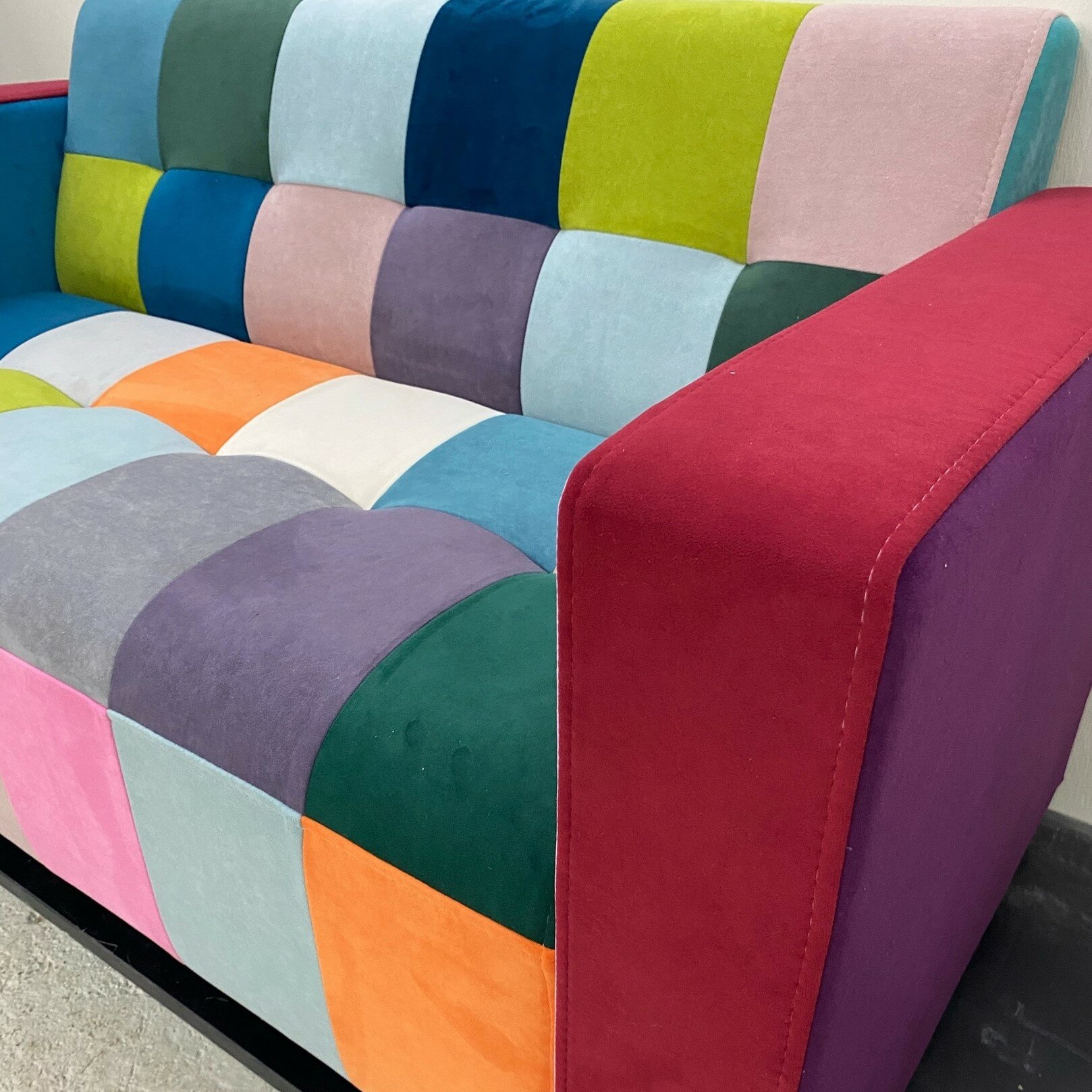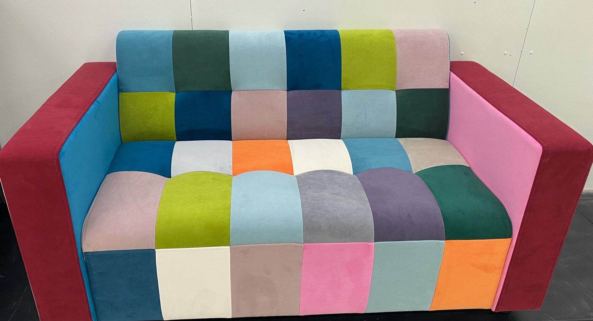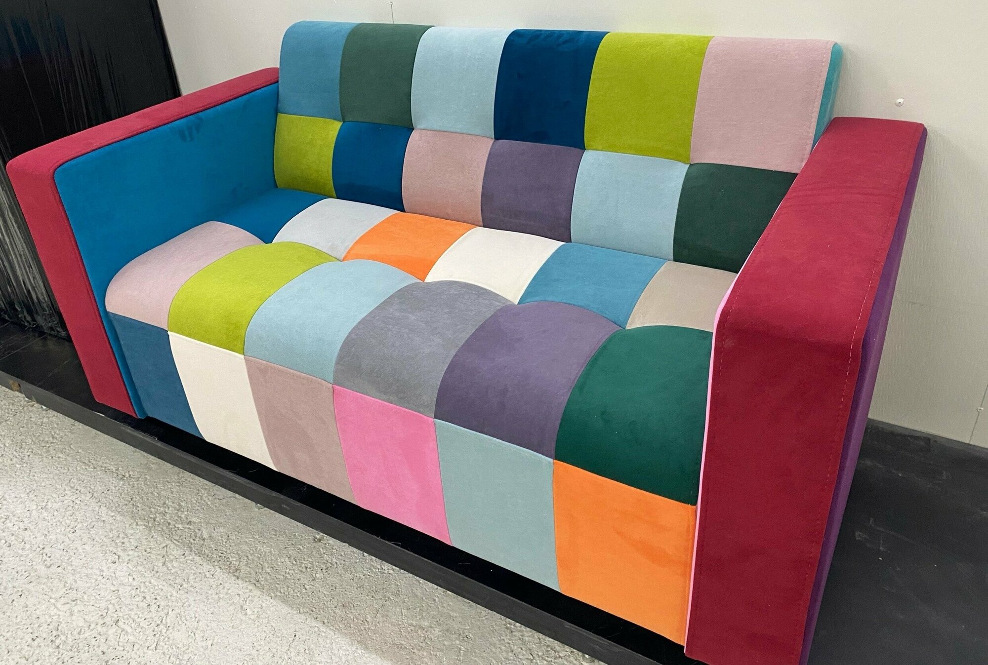 Отзывы на Диван Альфа Пэчворк прямой с подлокотниками цветной велюр, не раскладной, 142*69*72 см