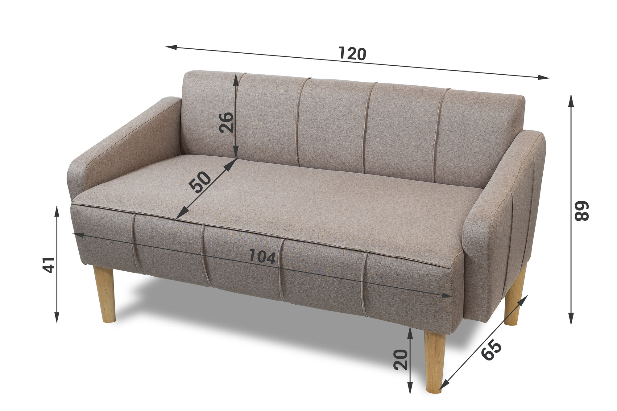 Диван Афина, прямой, с подлокотниками, рогожка, светло-коричневый, 120x65x68 см 12 508 ₽