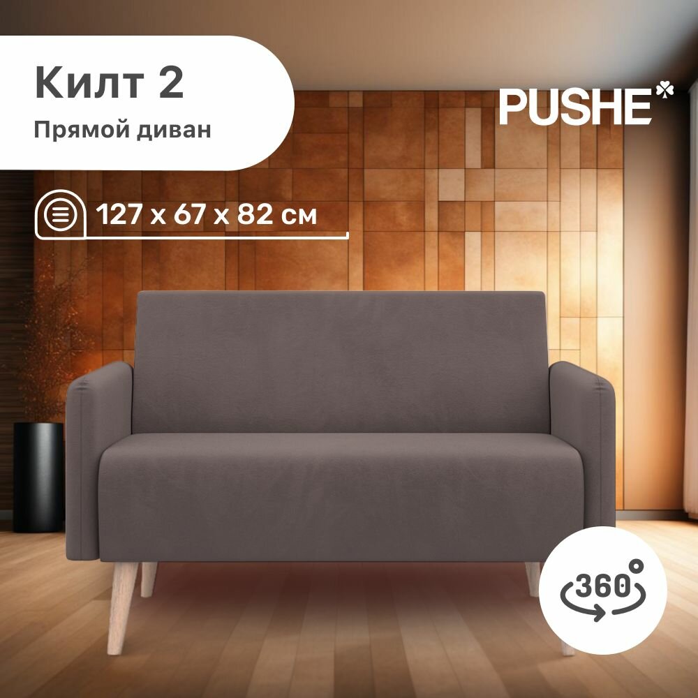 Прямой диван Килт 2 PUSHE, 127х67х82 см, диван пуше нераскладной маленький, без ящика для белья информация: