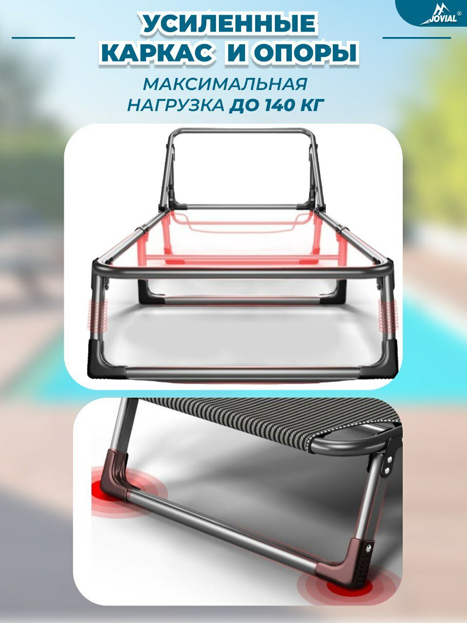 Отзывы на Раскладушка с толстым синим матрасом,4п Jovial, 190х67х28, до140кг