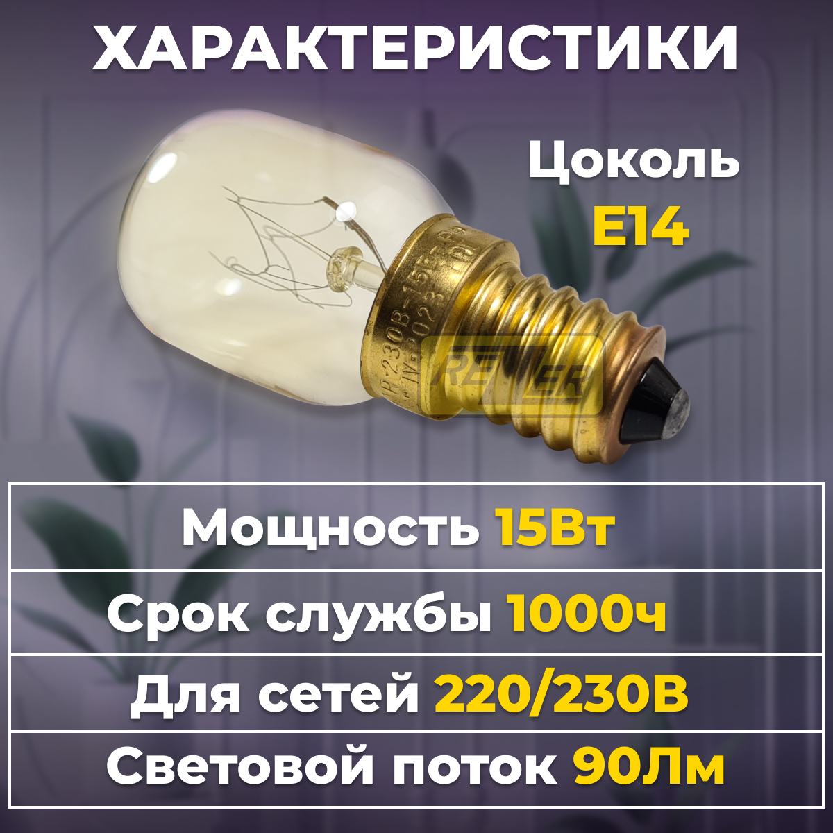 Лампа накаливания Rezer 15Вт E14 для духовых шкафов информация:
