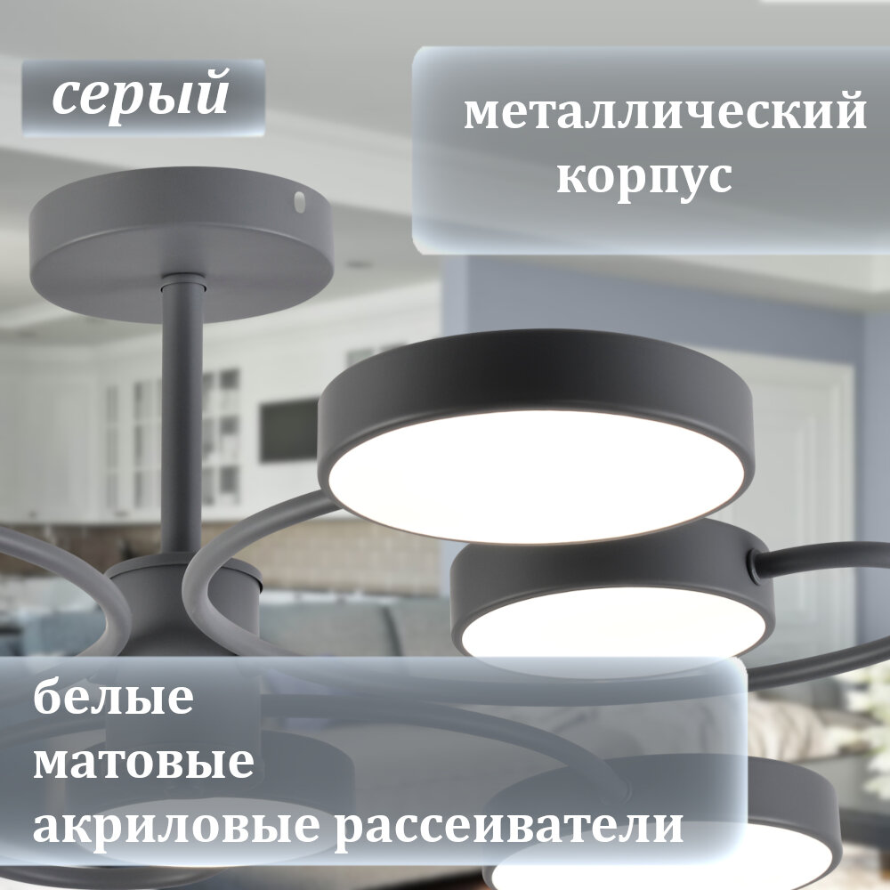 Люстра потолочная светодиодная Сканди 90w, серая информация: