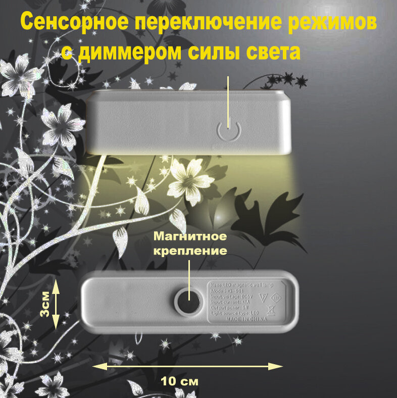 Светильник на магните аккумуляторный LED светодиодный ROHS , 10 см информация: