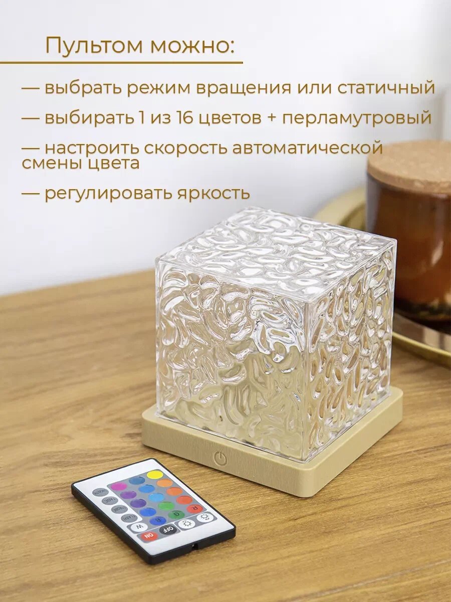 Светодиодный светильник, ночник с пультом ду. эффектом "Водная кладь" куб