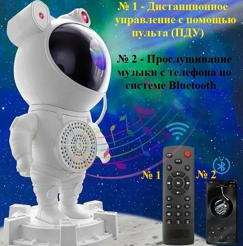 Детский ночник-проектор (Bluetooth колонка) звездного неба Космонавт / Лазерный ночник Астронавт с пультом ДУ информация: