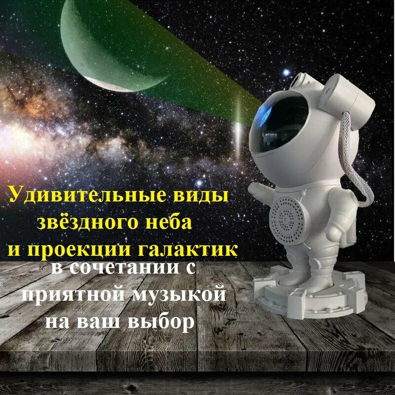 Отзывы на Детский ночник-проектор (Bluetooth колонка) звездного неба Космонавт / Лазерный ночник Астронавт с пультом ДУ