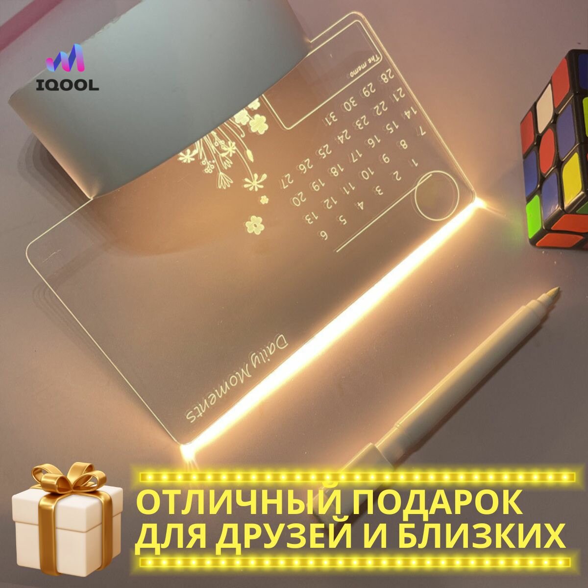 10 цен на Ночник детский для заметок с маркером 3D белый с календарем, для взрослых в подарок, светильник LED (с кабелем USB)