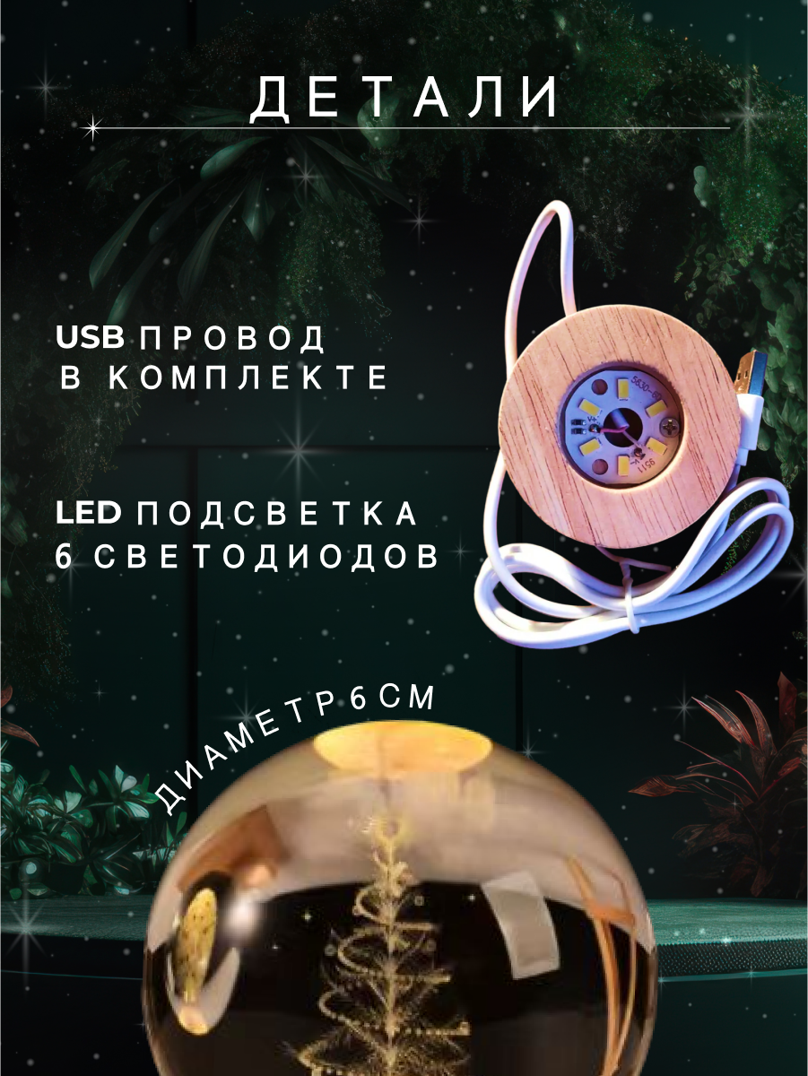 Ночник детский светодиодный стеклянный шар светильник ёлка информация: