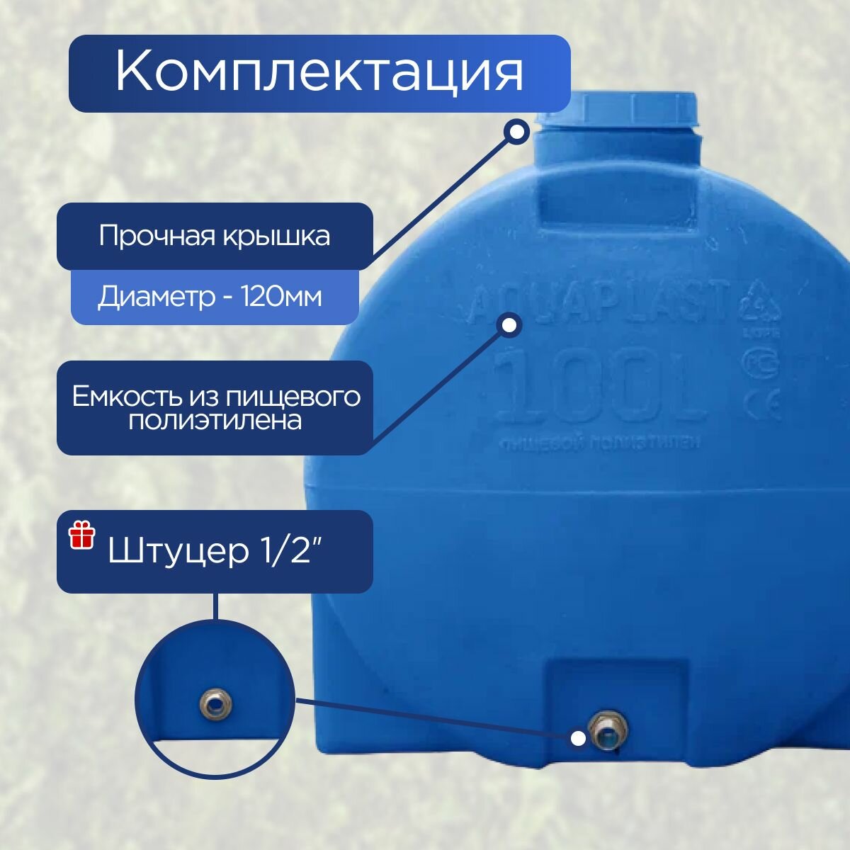 | Комплектация | Емкость на 100л, крышка (на горлышко 120мм), штуцер |