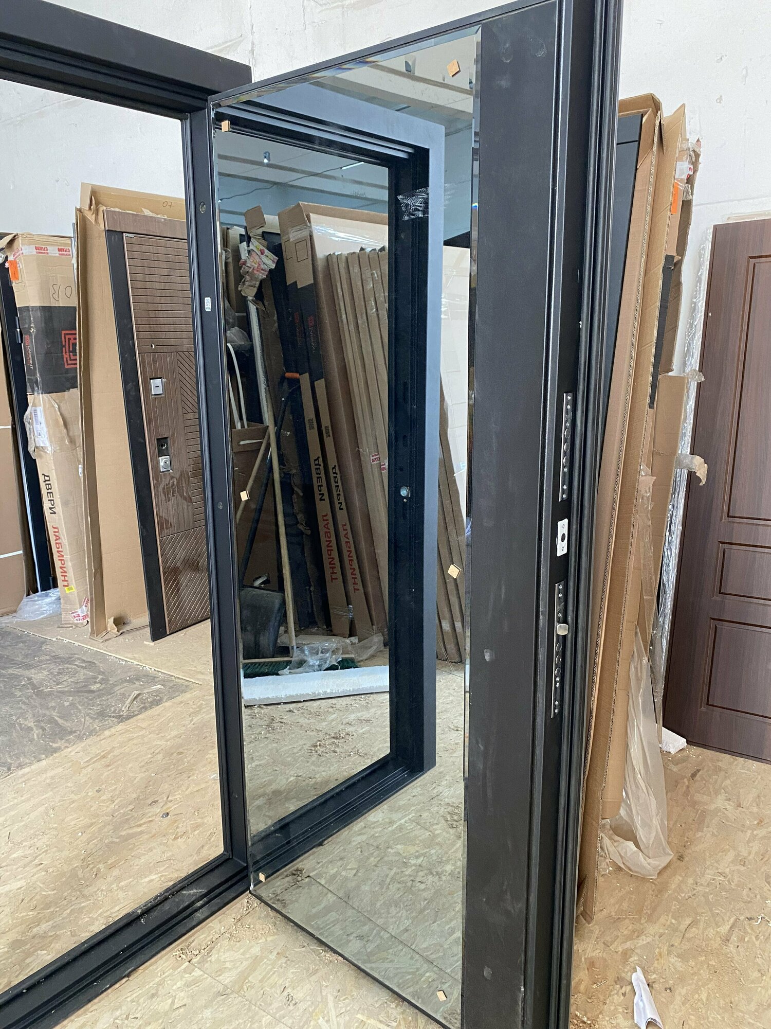 Отзывы на Входная стальная дверь для дома с терморазрывом BN-10 зеркало панорама черный кварц, размер по коробке 960х2050, левая