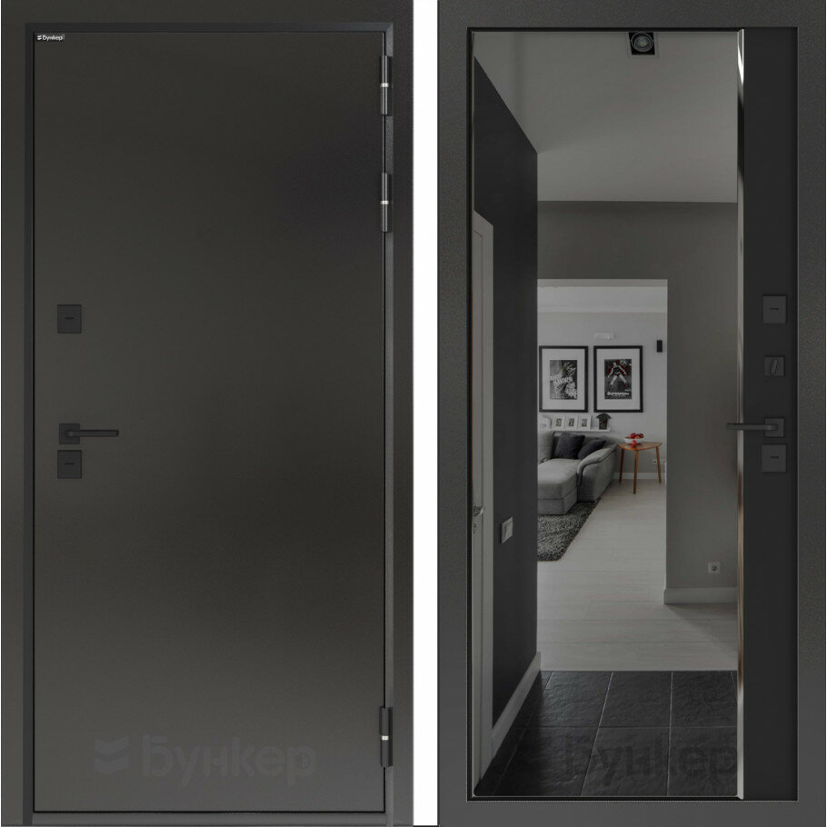 10 цен на Входная стальная дверь для дома с терморазрывом BN-10 зеркало панорама черный кварц, размер по коробке 880х2050, левая