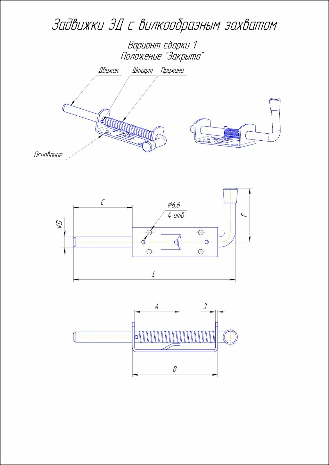 Задвижка (засов) пружинная ø12х150 для дверей и ворот (положение закрыто) информация: