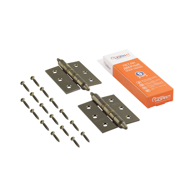 Петли дверные 2 шт. Нора-М 3"-2ВВ-CHP универсальные (75х63х2,5) - Старая бронза информация: