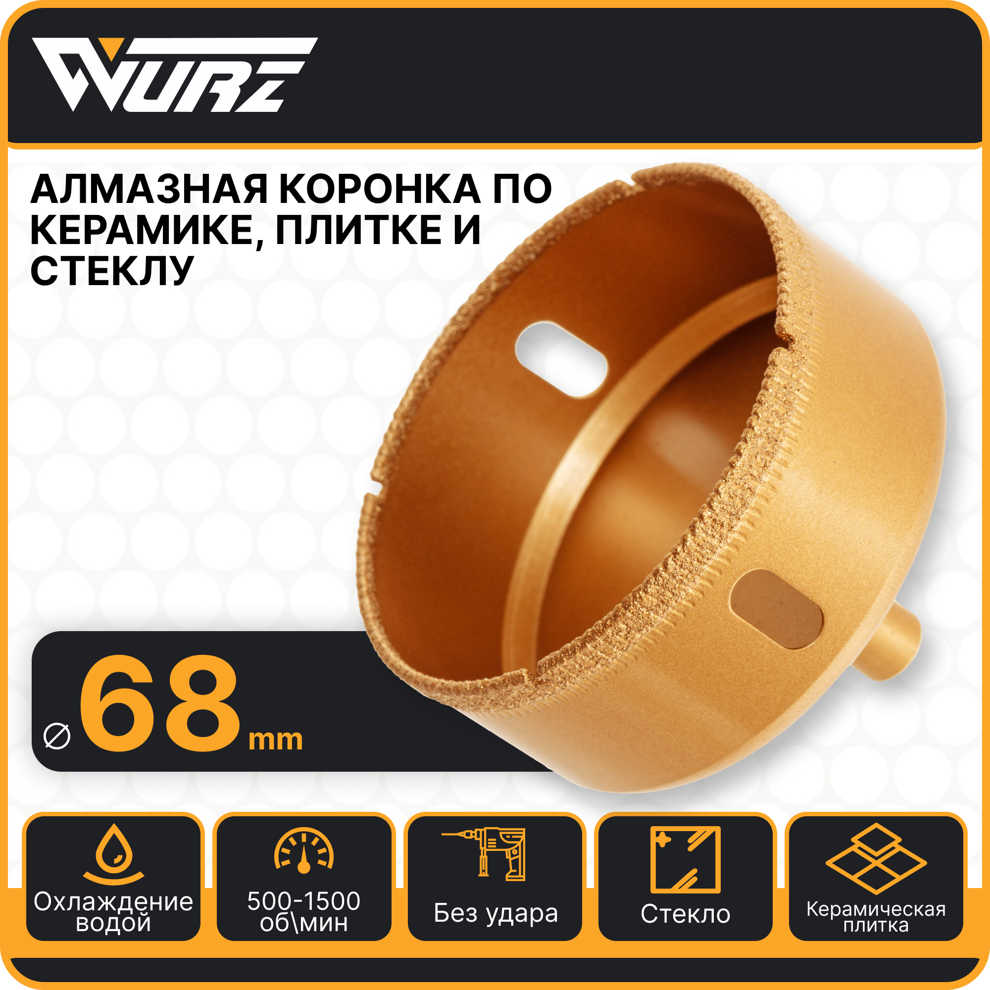 Коронка алмазная 68мм по керамике и стеклу WURZ 91068 информация: