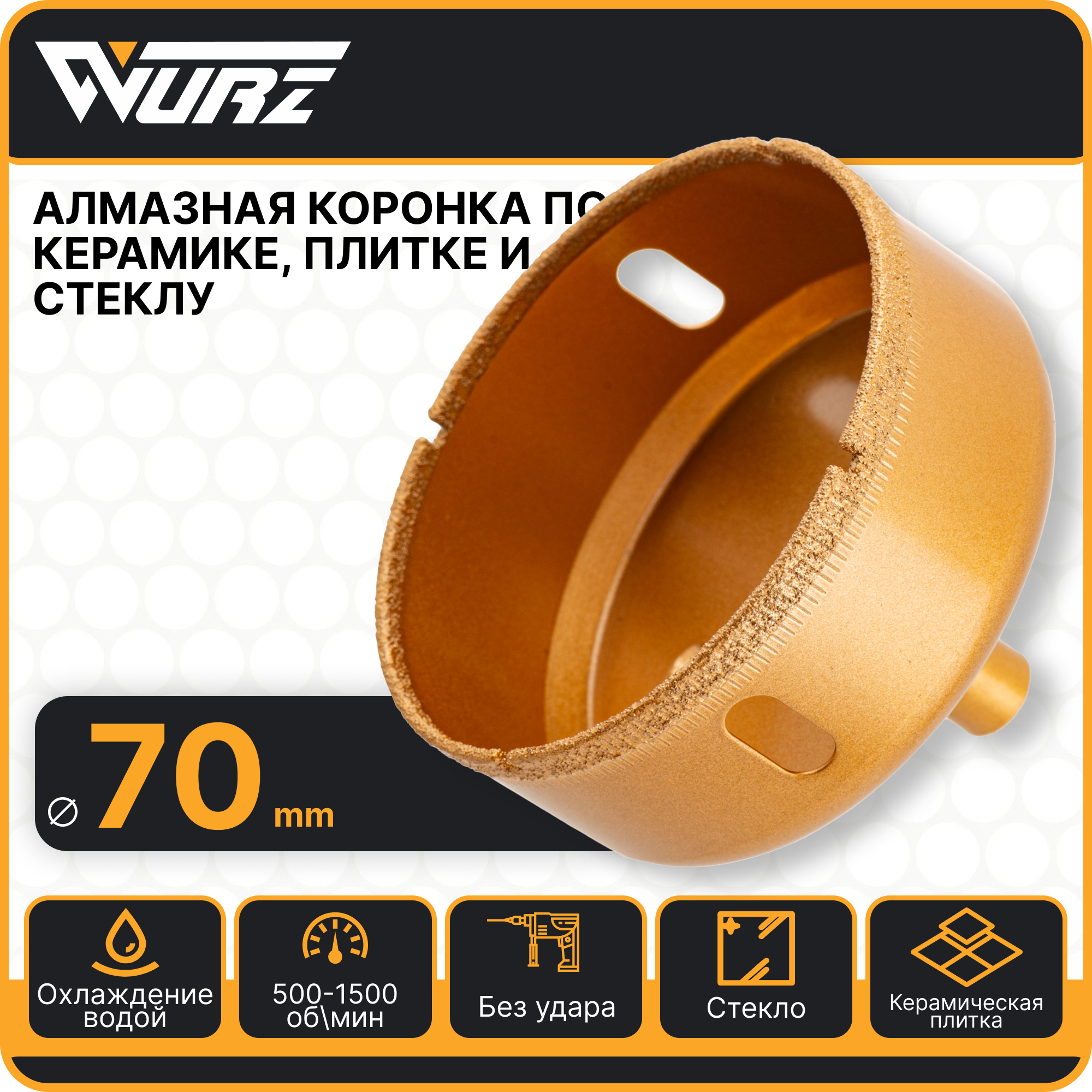 Коронка алмазная 70мм по керамике и стеклу WURZ 91070 информация: