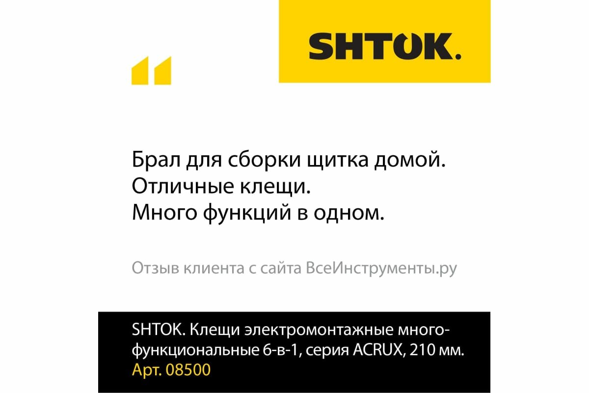 Отзывы на SHTOK Клещи электромонтажные многофукциональные 6-в-1, серия ACRUX, 210 мм, 08500
