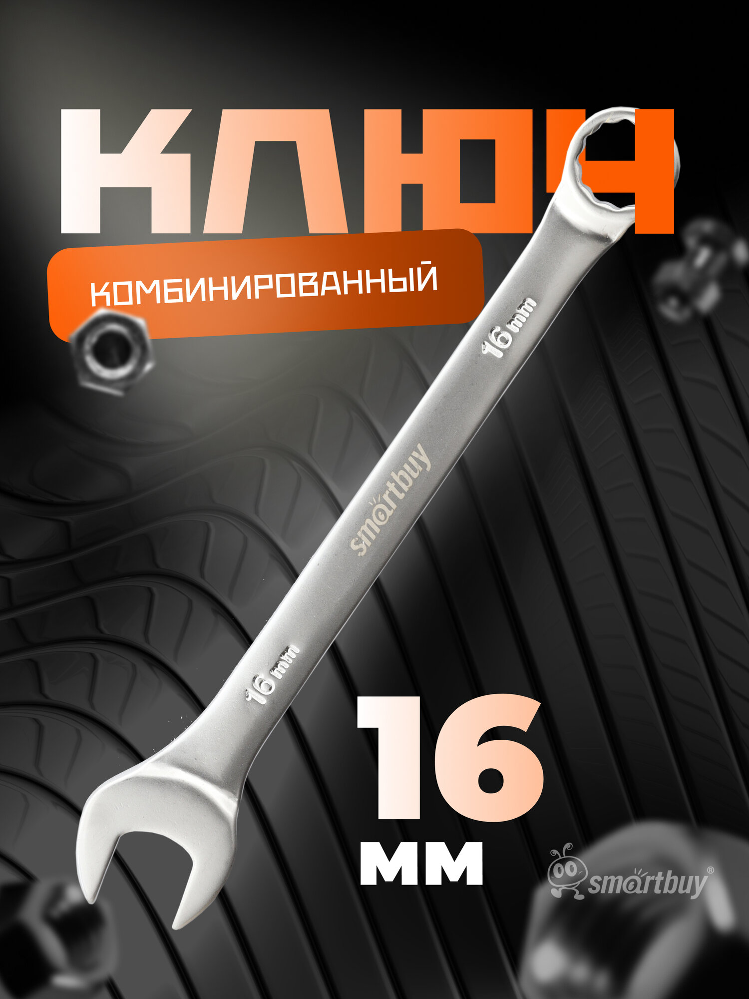 Ключ комбинированный на 16 мм, хромированный, 40X, Smartbuy tools, цена за 1 шт
