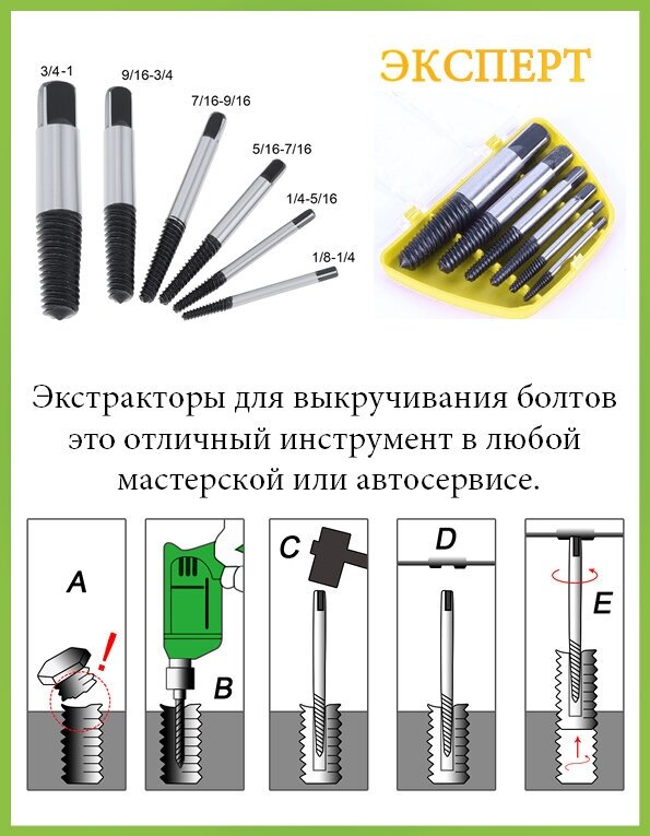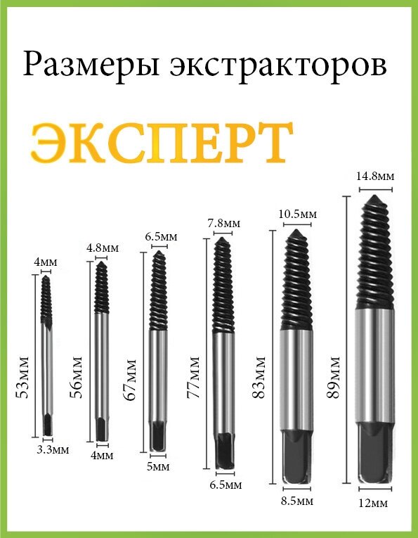 Набор экстракторов для сломанных болтов 6 шт. информация: