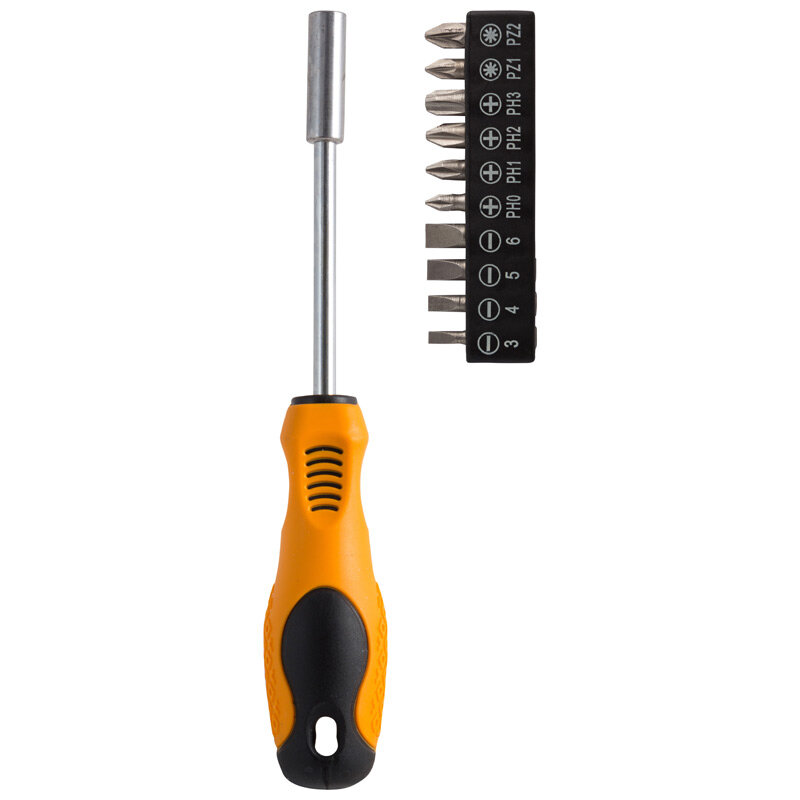 10 цен на Отвертка с набором из 10 бит: SL3,SL4,SL5,SL6 PH0,PH1,PH2,PH3 PZ1,PZ2