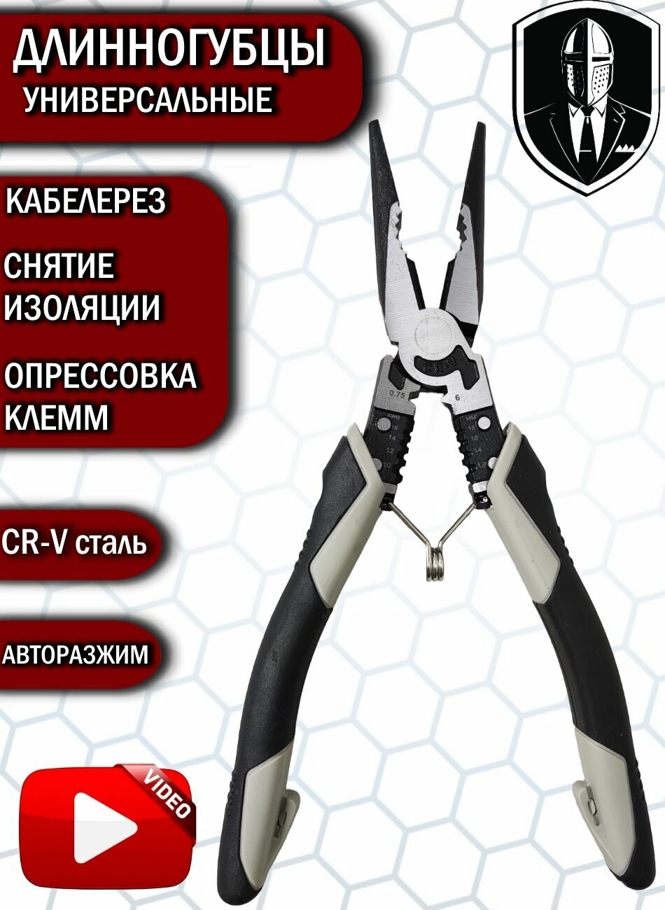 Длинногубцы универсальные электромонтажные. Кабелерез. информация: