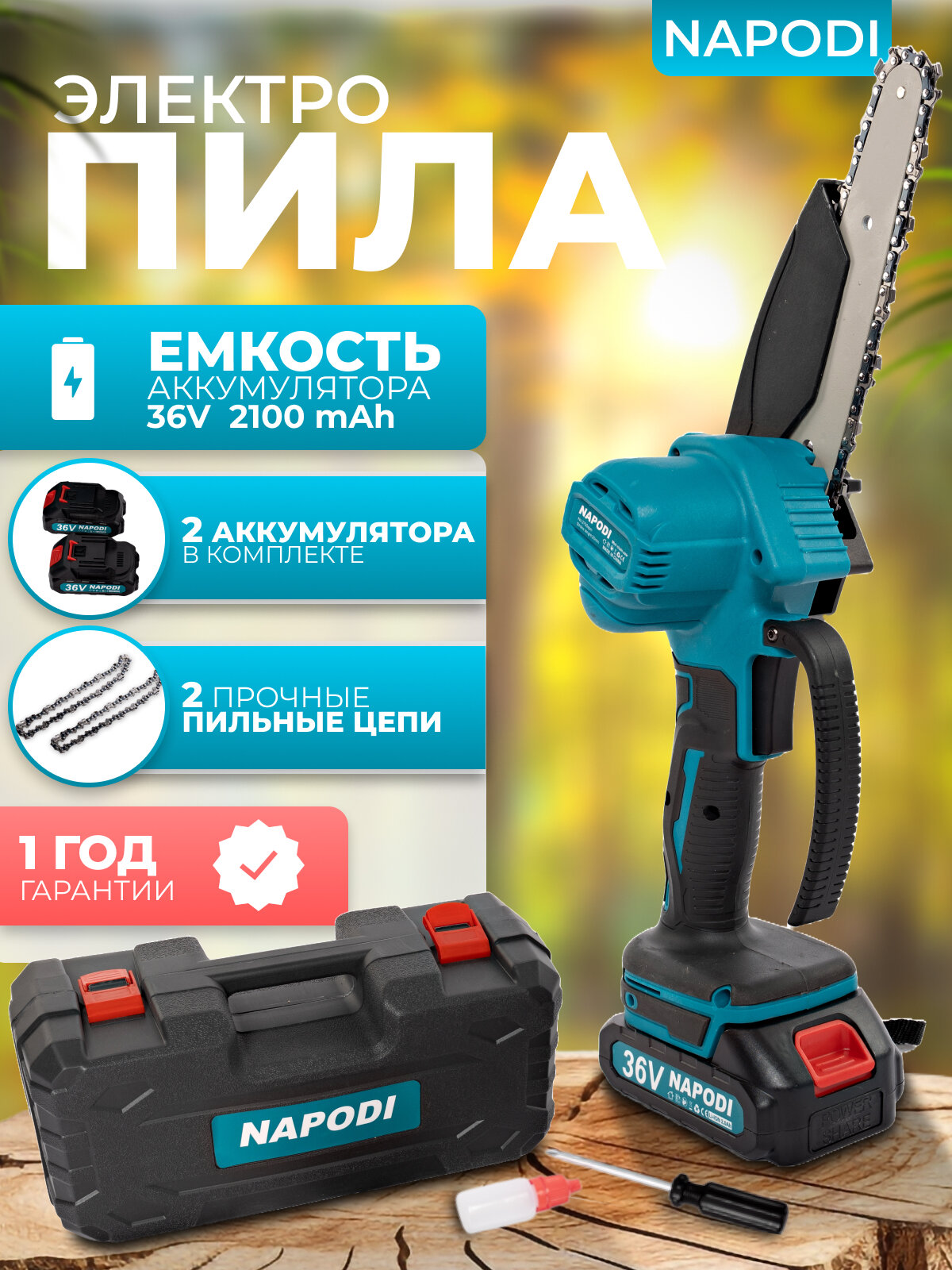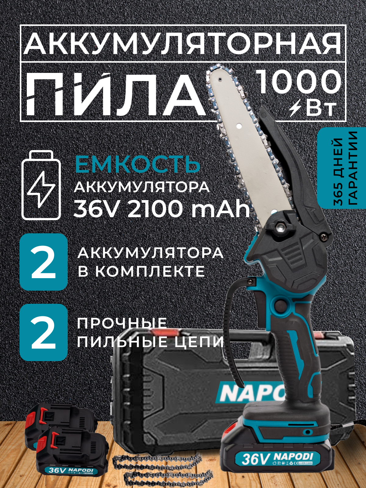 Аккумуляторная цепная пила, с запасными цепями 2 шт, аккумуляторами 2 шт