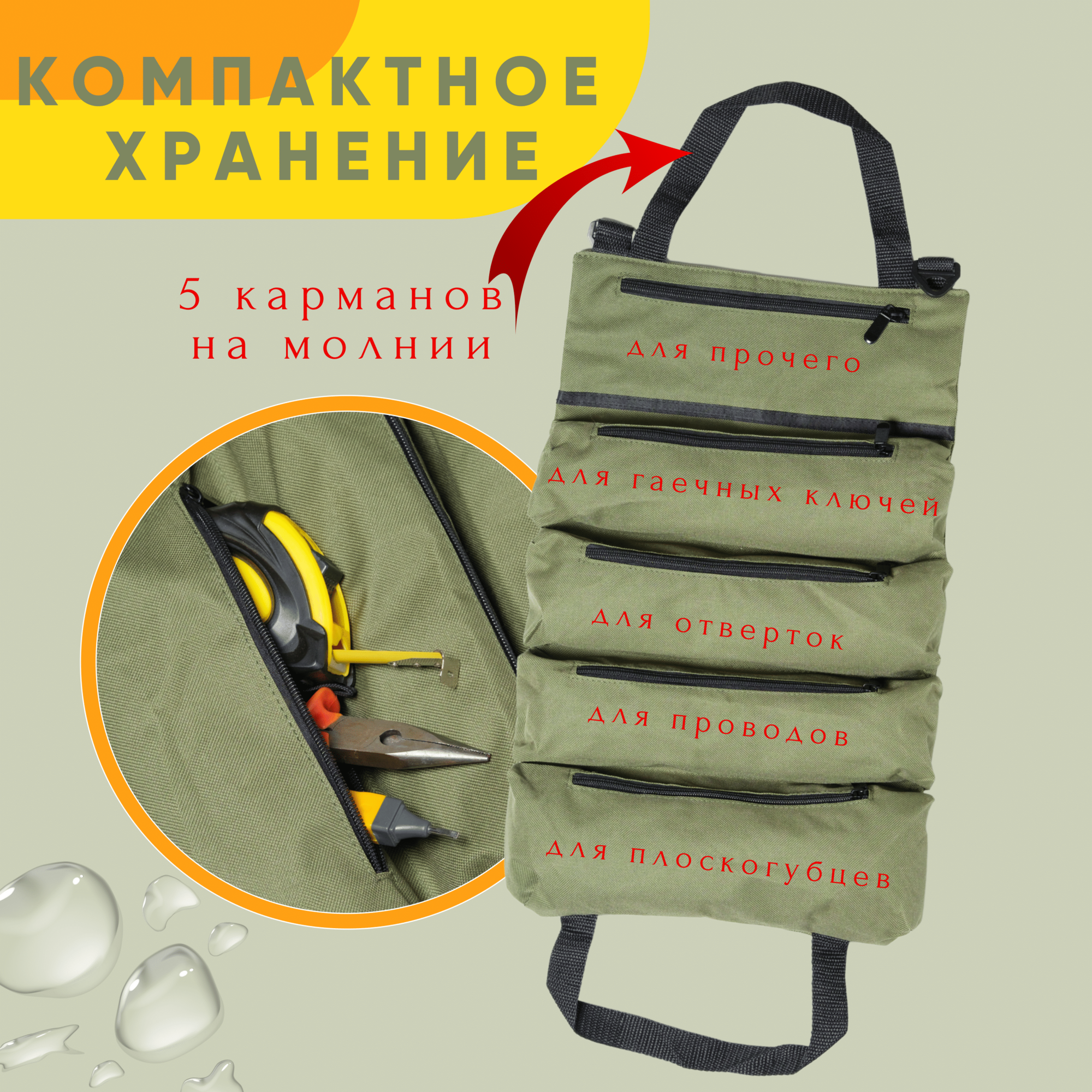 Отзывы на Сумка скрутка BRINHILL для инструментов на 5 отделений с застежкой, зеленая