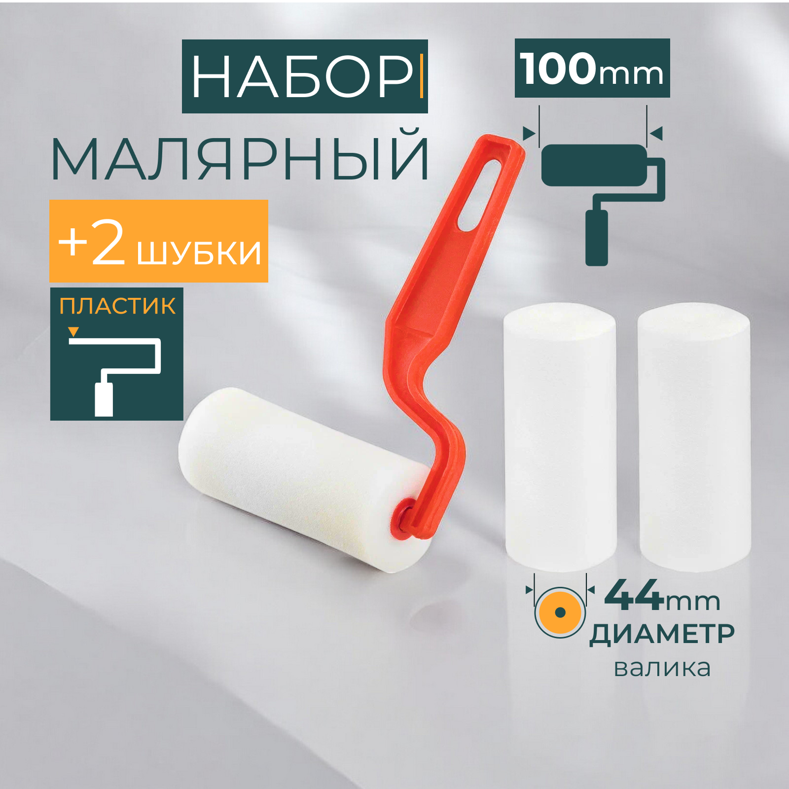 10 цен на Валик для краски поролоновый 100 мм, 2 сменные шубки