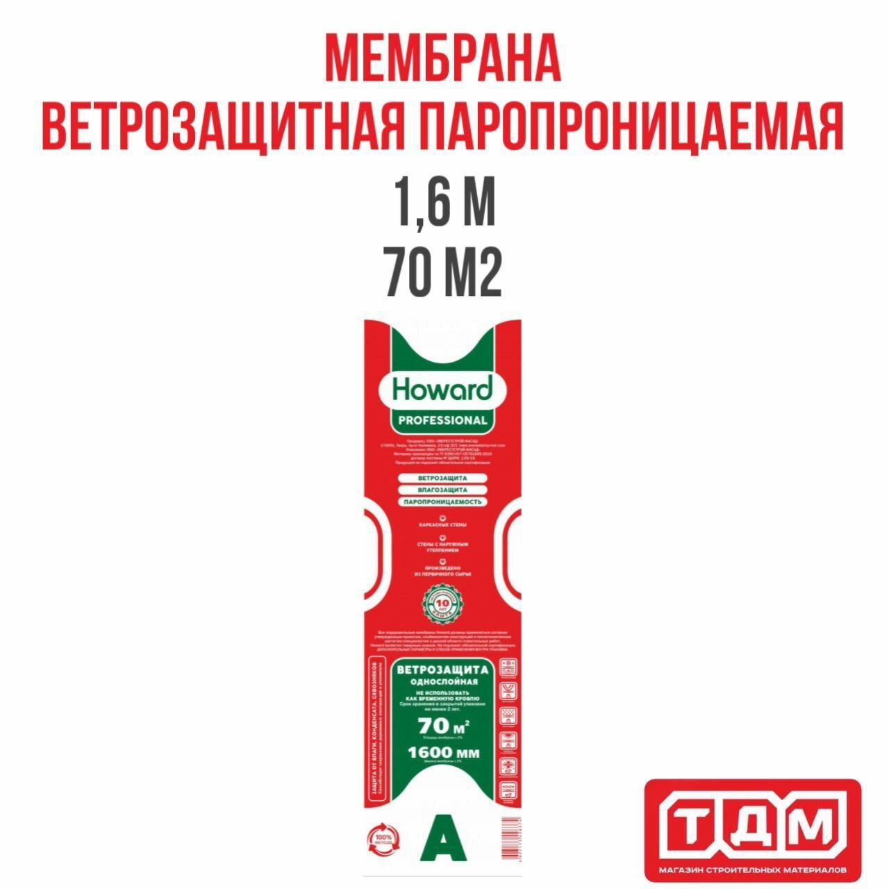 Мембрана ветрозащитная паропроницаемая 1,6м (70 м2) А HOWARD Professional информация: