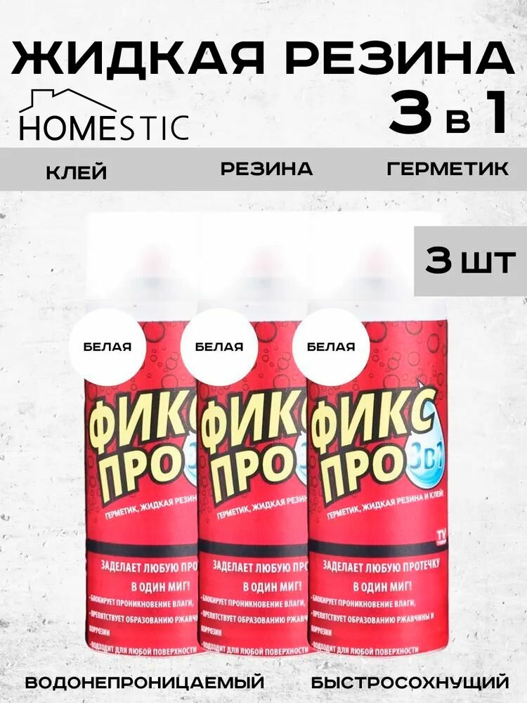 Жидкая резина герметик Фикс Про 3в1, белый, 3 шт, 450мл, клей строительный информация: