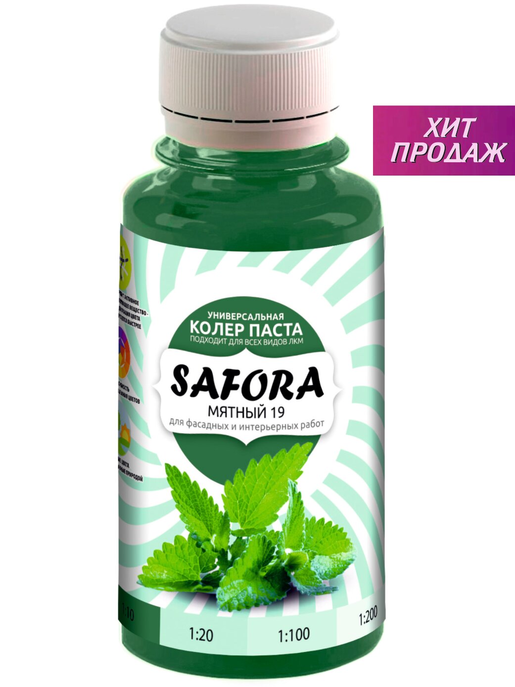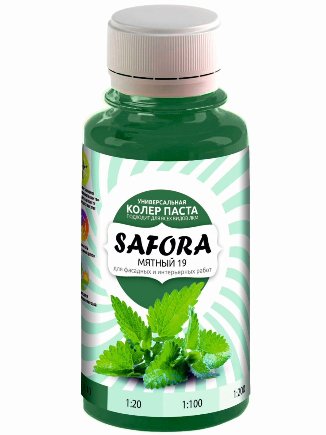 Колеровочная паста 19 мятный, колер темно-зеленый SAFORA 100мл, колер для краски, штукатурки и других материалов, колер паста информация: