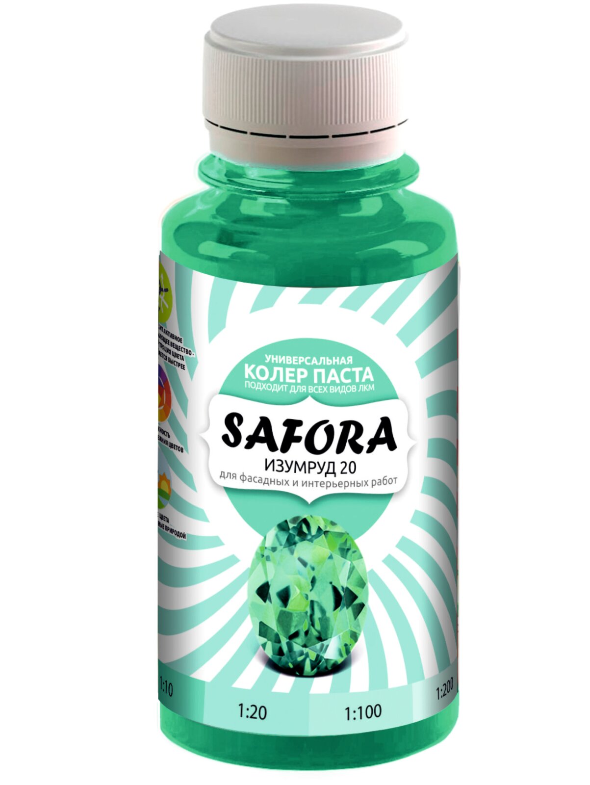 Колеровочная паста 20 изумрудный SAFORA 100мл, колер для краски, штукатурки и других материалов, колер паста информация: