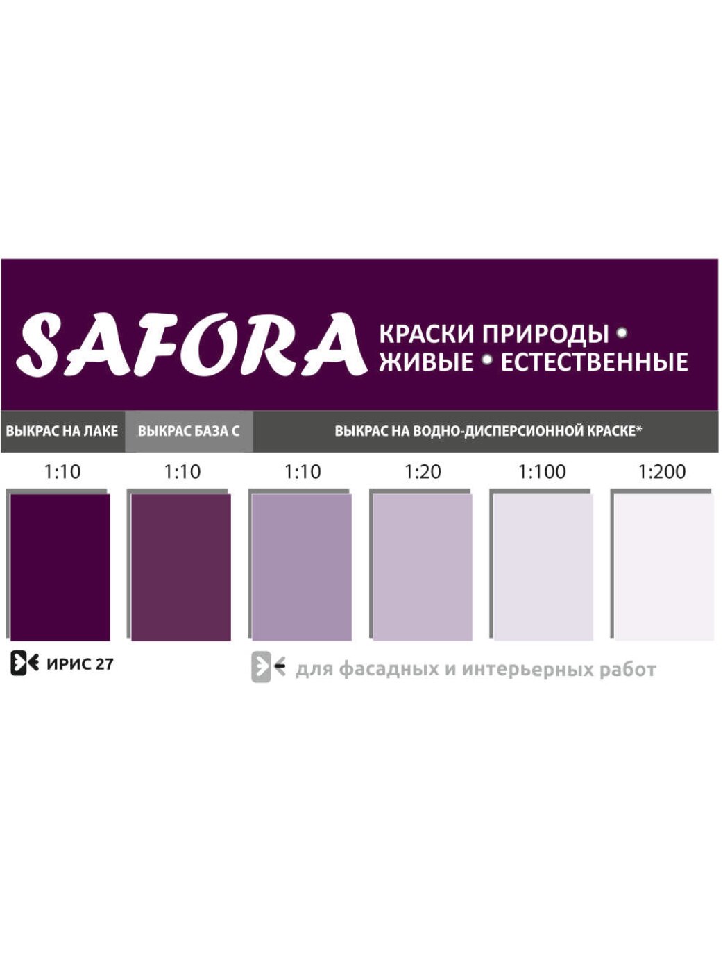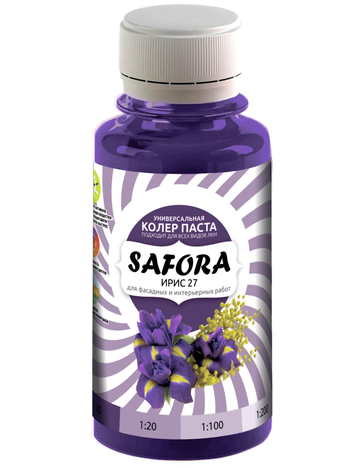 Колеровочная паста 27 ирис SAFORA 100мл, колер для краски, штукатурки и других материалов, колер паста информация: