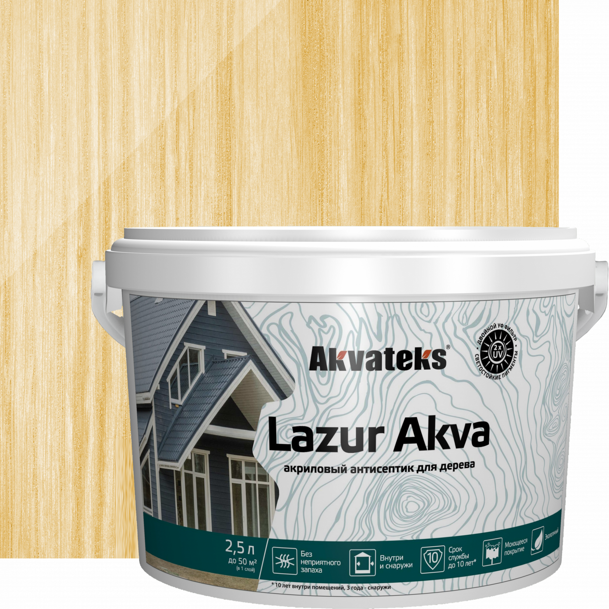 Лак-антисептик для дерева Akvateks Lazur Akva, акриловый, полуглянцевый, 2,5 л, бесцветный