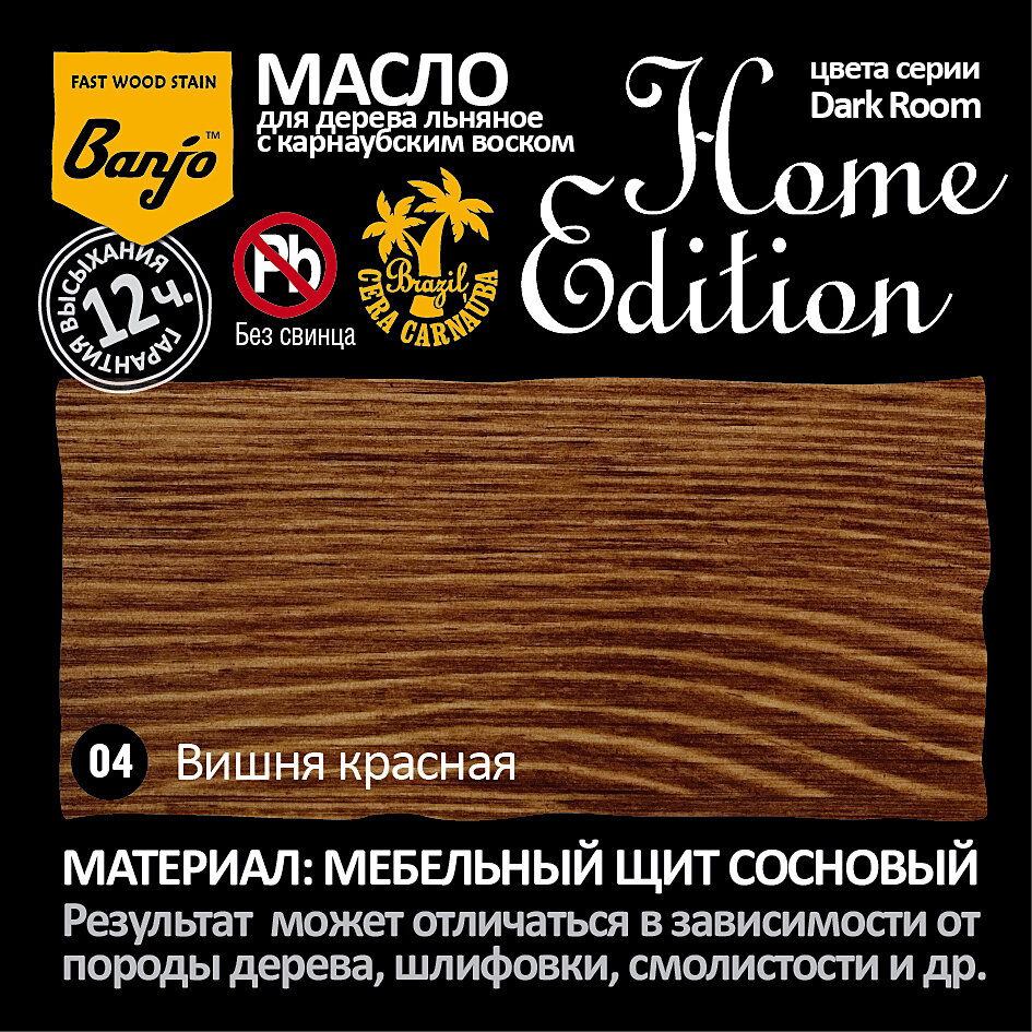 Масло для дерева и мебели льняное с карнаубским воском Banjo Home Edition вишня красная (масло-воск) информация: