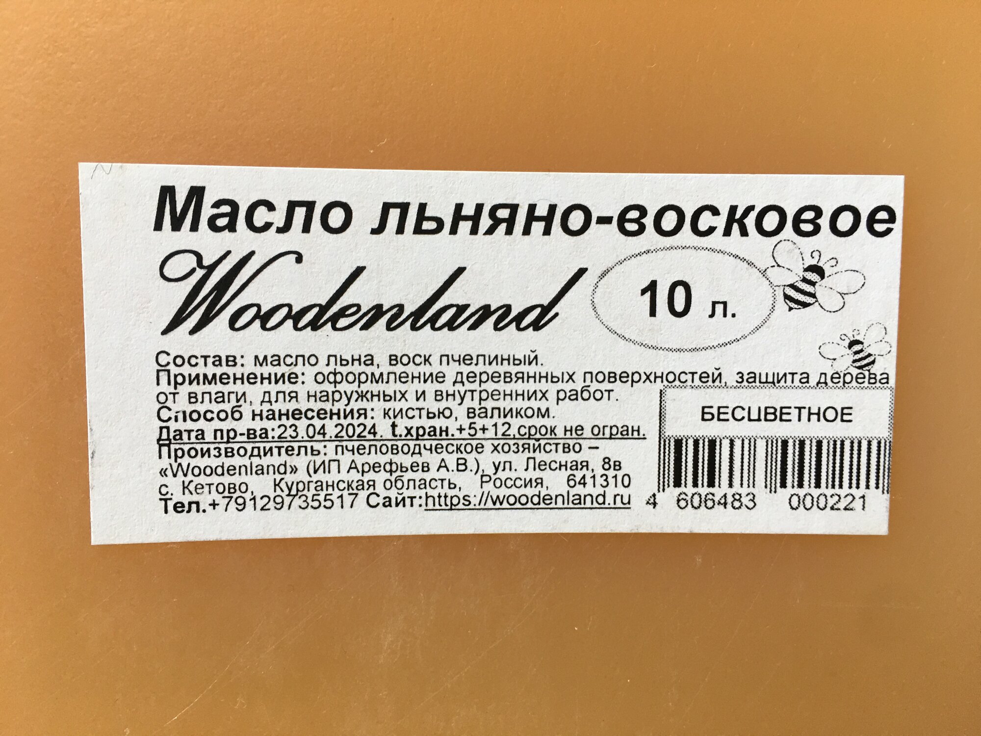 Отзывы на Масло льняно-восковое Woodenland, 10 л. (масло льна, воск пчелиный). Для дерева.