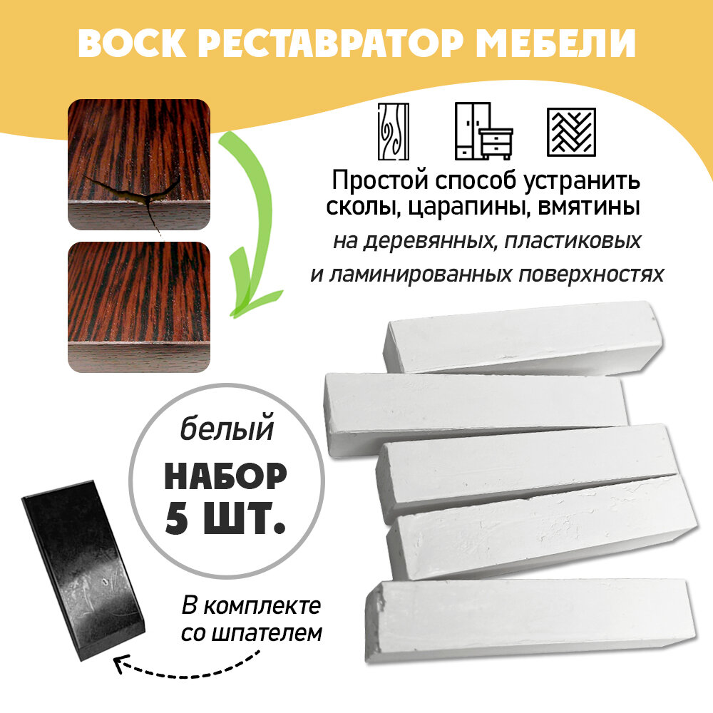 10 цен на Воск мягкий для реставрации мебели и напольного покрытия/ 5 шт/ цвет - белый