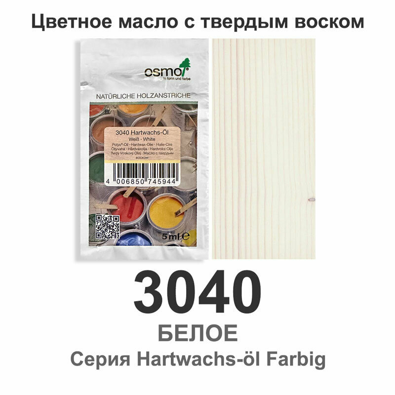 Масло с твердым воском цветное, Osmo 3040 Hartwachs-Ol Farbig, 5 мл., белое информация: