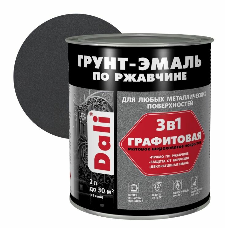 Грунт-эмаль по ржавчине Dali 3в1 графитовая серая 2 л информация: