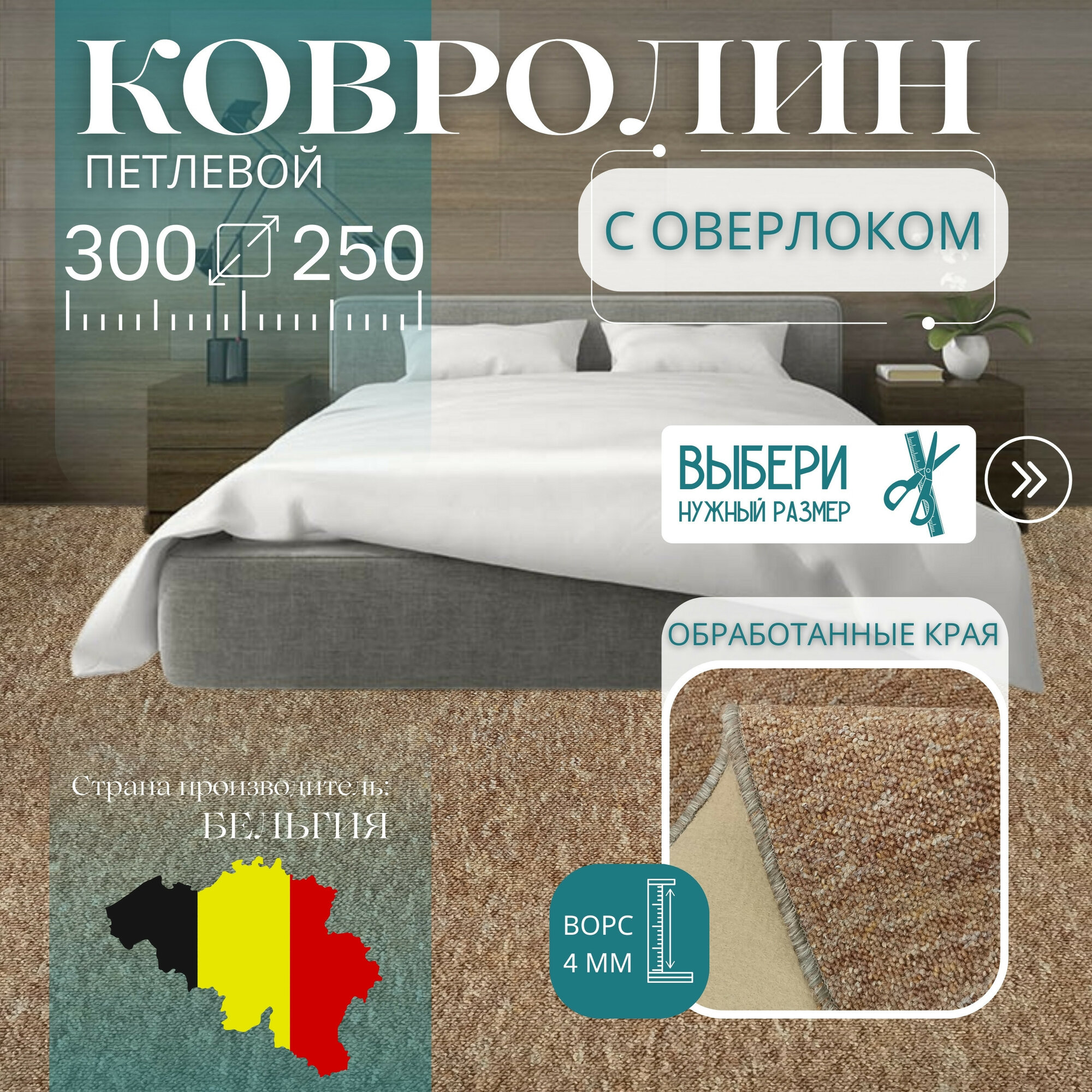 Ковролин метражом 3х2,5 м, петлевой "TURBO" бежевый, с оверлоком информация: