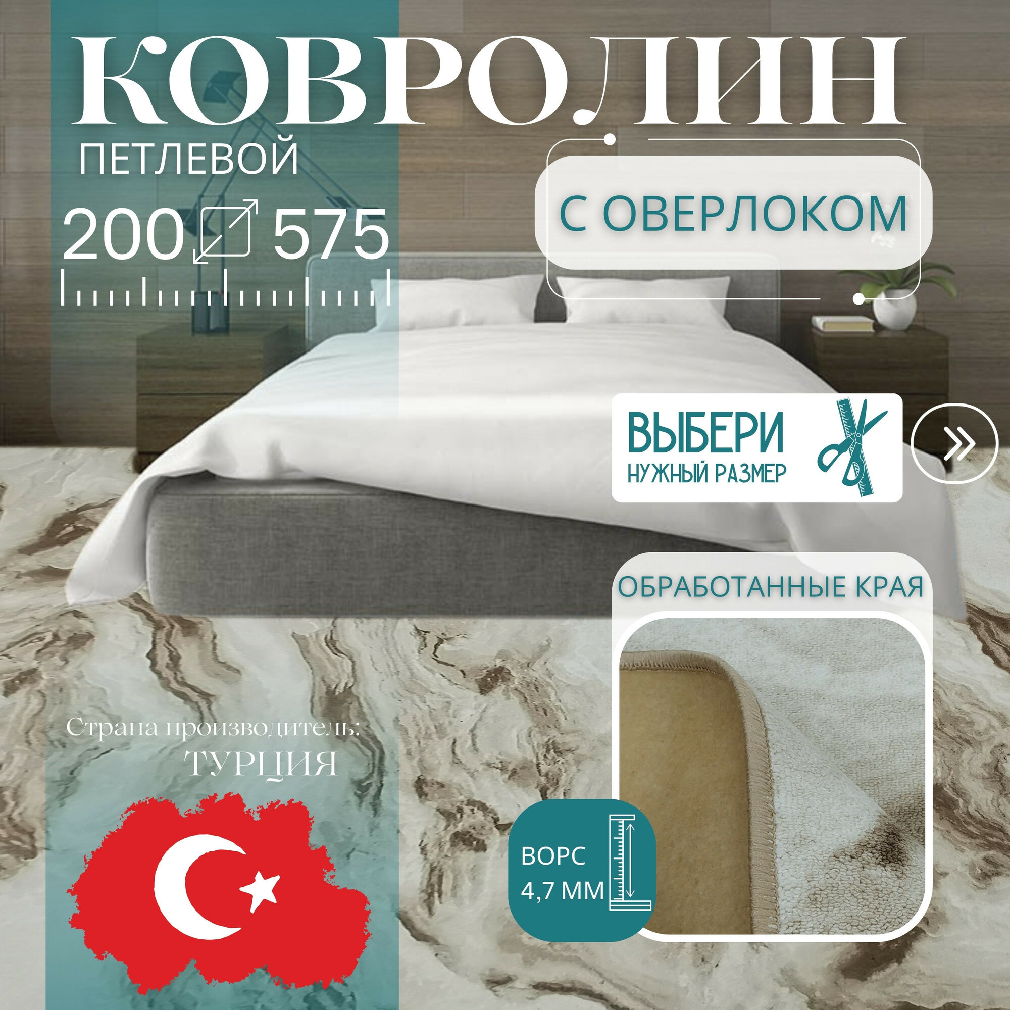 10 цен на Ковролин метражом 2х5,75 м, гладкий "Песочный", бежевый с оверлоком