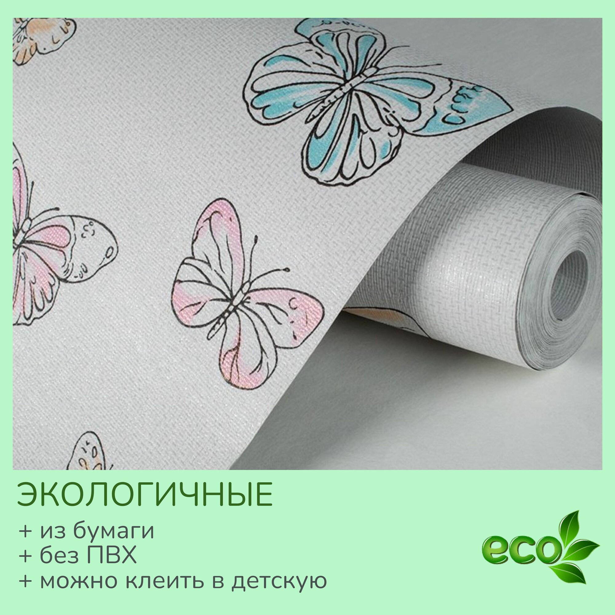 10 цен на Обои с бабочками, бумажные, дуплекс, матовые, плотные, ЭКО лофт без ПВХ, 0.53x10м, бабочки на рогожке.