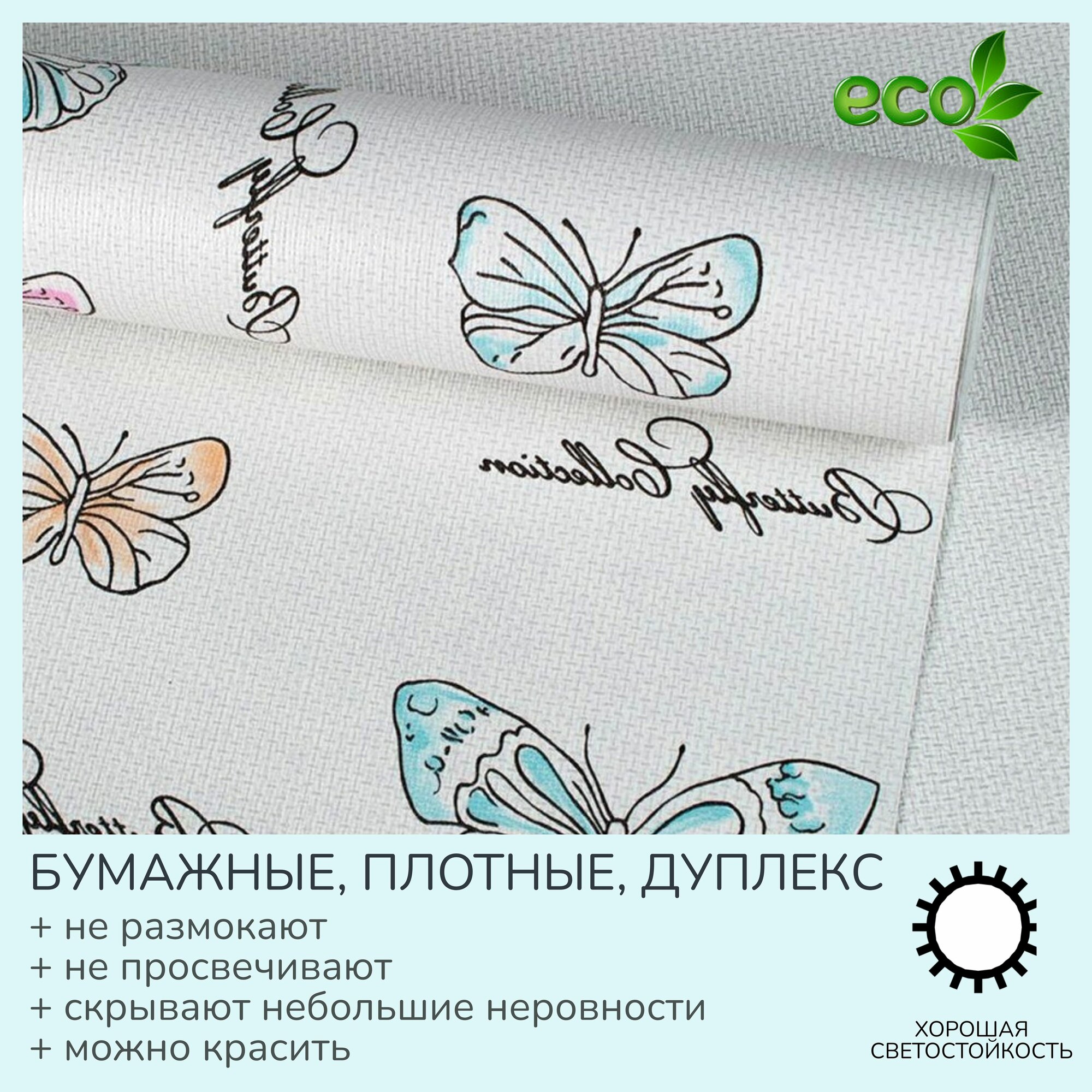 Обои с бабочками, бумажные, дуплекс, матовые, плотные, ЭКО лофт без ПВХ, 0.53x10м, бабочки на рогожке. информация: