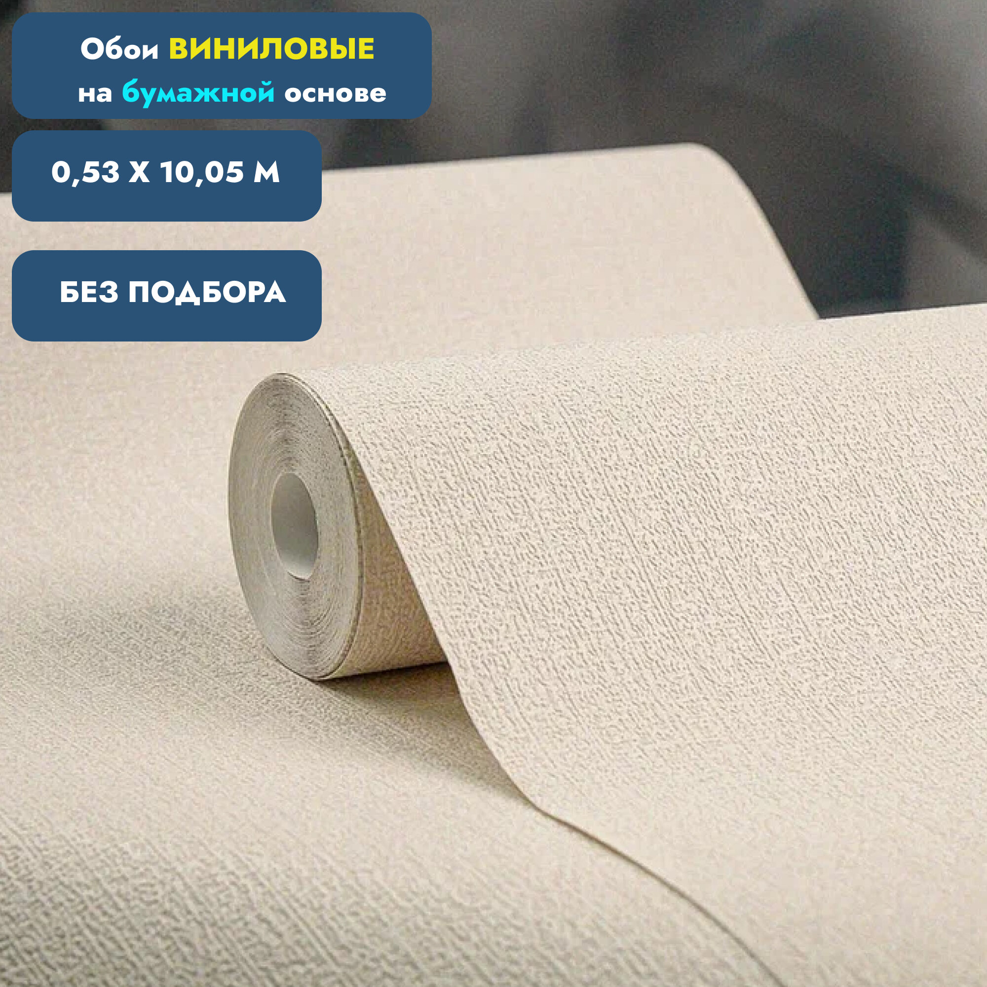 10 цен на Виниловые обои "Аруба" на бумажной основе, молочные, однотонные, 0,53х10,05м, 5,3м²