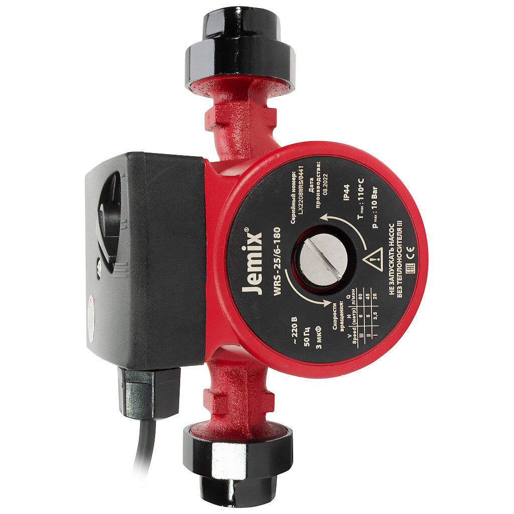 JEMIX Насос циркуляционный ЦН-25/6-180 (3 скорости,100/70/44 Вт., производ. 60/45/26 л/мин.) 87651 информация: