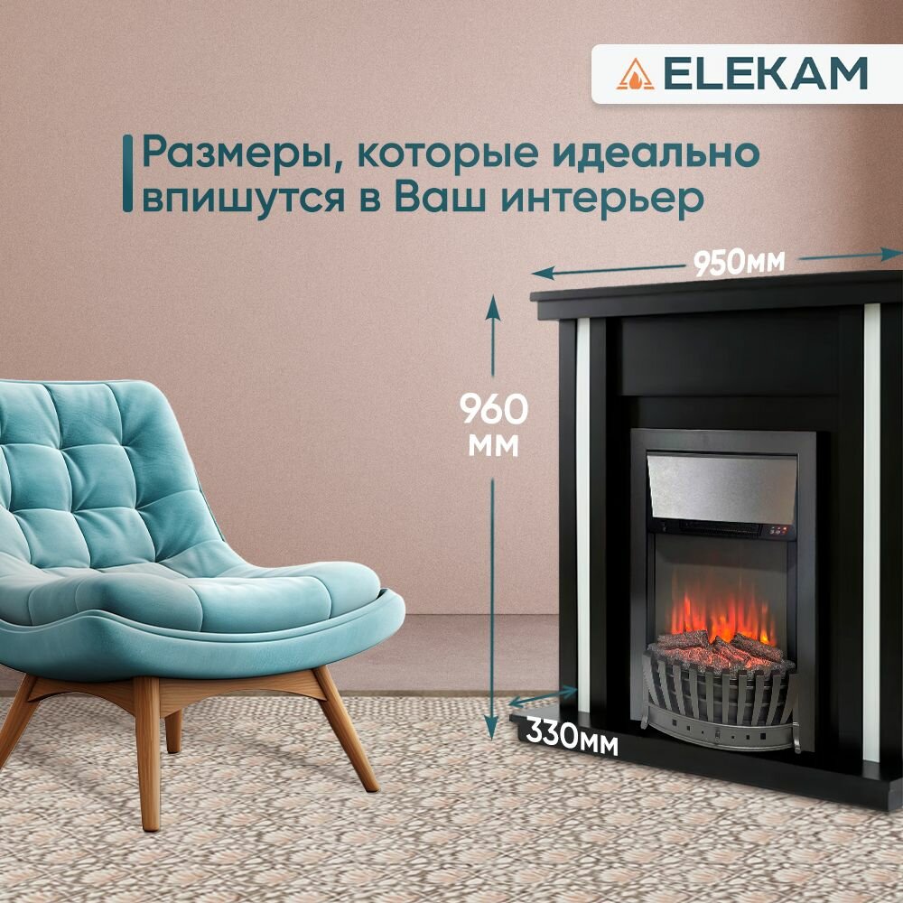 Камин электрический напольный ELEKAM NEO с порталом и очагом с пультом, обогревом и звуком потрескивания дров 43 546 ₽