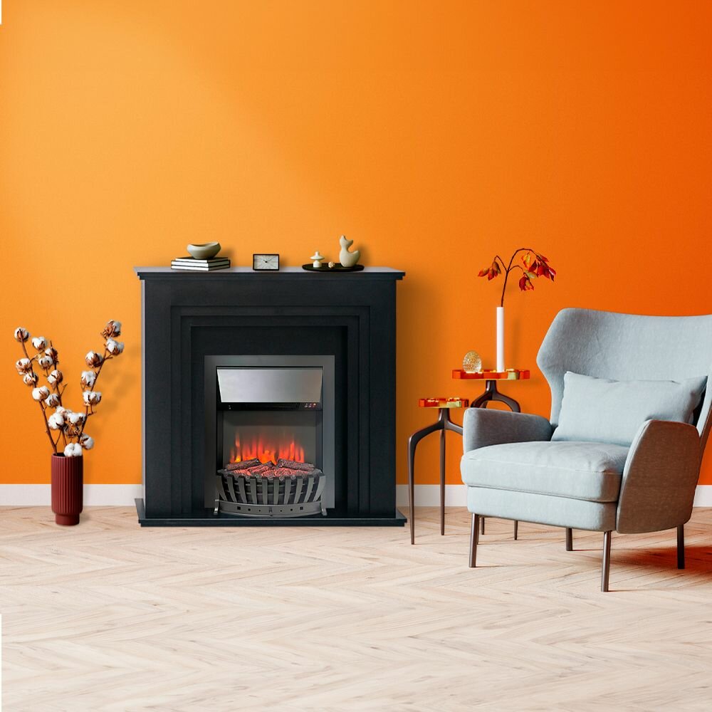 Камин электрический ELEKAM Silver чёрный с очагом Velar с пультом, обогревом и звуком потрескивания дров (Электрокамин) информация: