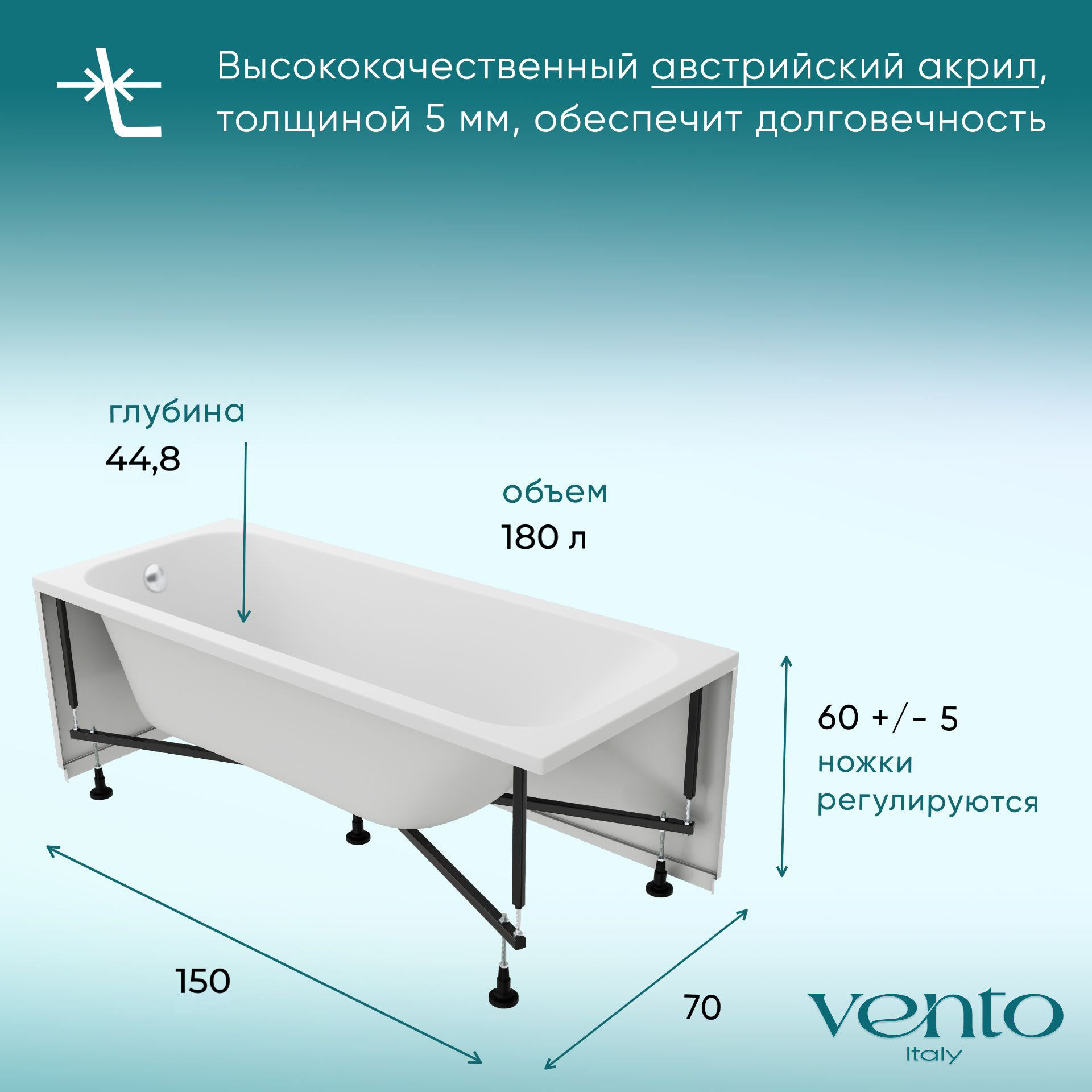 10 цен на Акриловая ванна 150х70 MITRA от бренда Vento Italy, белая, пр