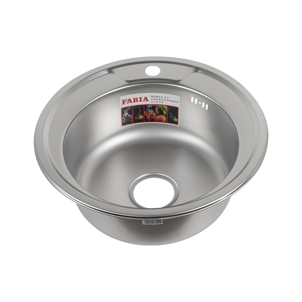 Мойка кухонная FABIA врезная круглая, 49 см, глубина 180 мм, большой сифон с переливом информация: