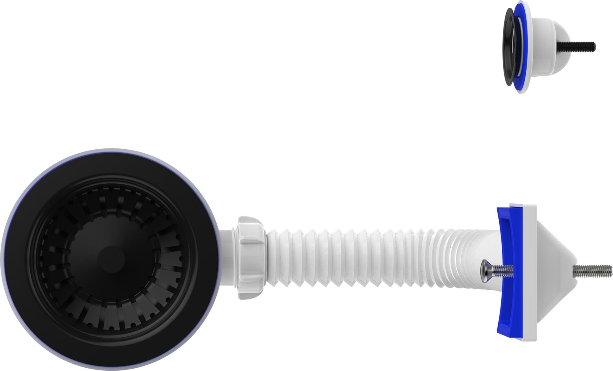 Сифон для мойки большая горловина с переливом, с отводом под сливной шланг и со съёмной корзинкой для мусора